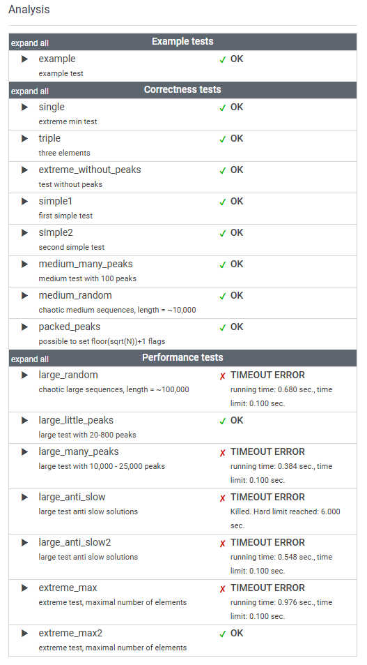 Flags can only be set on peaks. What's more, if you take K flags, then the distance between any two flags should be greater than or equal to K. The distance between indices P and Q is the absolute value |P − Q|.