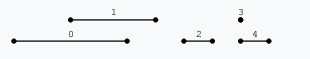 The size of a non-overlapping set containing a maximal number of segments is 3. For example, possible sets are {0, 2, 3}, {0, 2, 4}, {1, 2, 3} or {1, 2, 4}. There is no non-overlapping set with four segments.