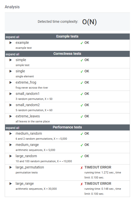 The goal is to find the earliest time when the frog can jump to the other side of the river. The frog can cross only when leaves appear at every position across the river from 1 to X (that is, we want to find the earliest moment when all the positions from 1 to X are covered by leaves). You may assume that the speed of the current in the river is negligibly small, i.e. the leaves do not change their positions once they fall in the river.