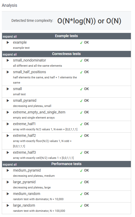 The dominator of A is 3 because it occurs in 5 out of 8 elements of A (namely in those with indices 0, 2, 4, 6 and 7) and 5 is more than a half of 8.
